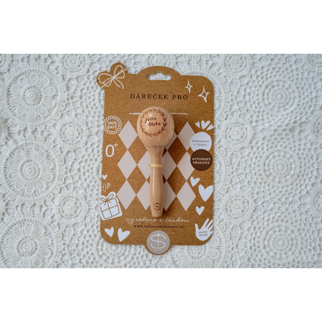 Dřevěná rumba koule s nápisem "jsem láska" je pokračováním úspěšné kolekce. Jemný zvuk si oblíbí nejen děti, ale i rodiče:-)