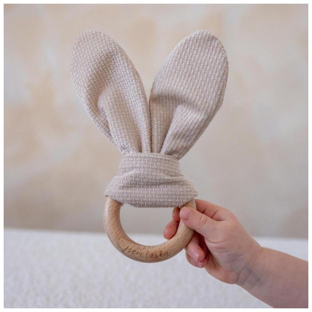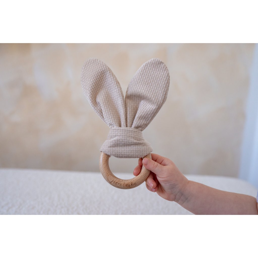 Dřevěné kousátko je do hladka vybroušené, bezpečné a poslouží jako záchrana při růstu prvních zoubků a bolesti dásní. Kousátko je ušito se šustícím papírem uvnitř látky, samotná látka velvetu je na dotek velice příjemná, hebká a garantujeme, že každé miminko nedá tuto hračku z ruky pryč :-)