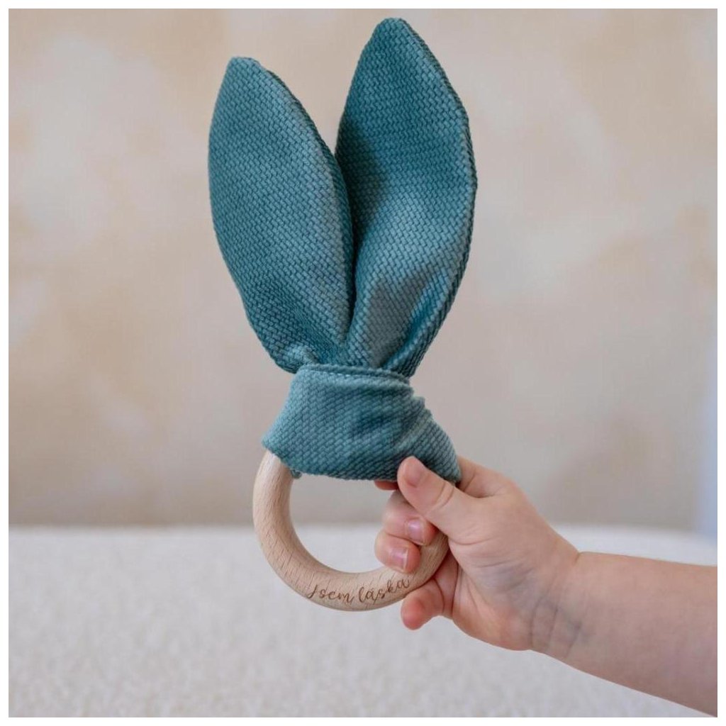 Dřevěné kousátko je do hladka vybroušené, bezpečné a poslouží jako záchrana při růstu prvních zoubků a bolesti dásní. Kousátko je ušito se šustícím papírem uvnitř látky, samotná látka velvetu je na dotek velice příjemná, hebká a garantujeme, že každé miminko nedá tuto hračku z ruky pryč :-)