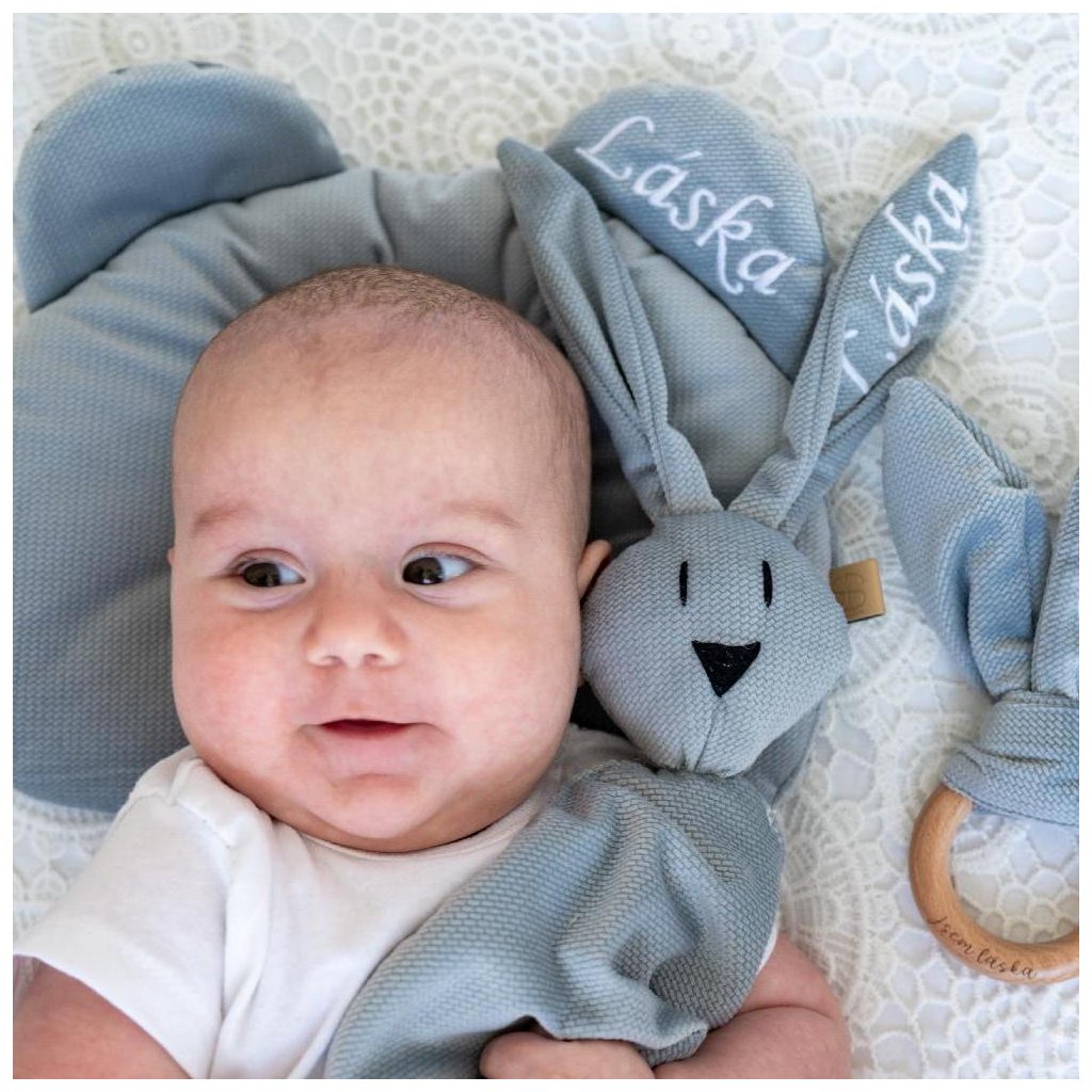 „Jsem láska“ je kolekce, kterou pro vás šijeme skutečně s láskou. Tento set laděný do béžové barvy je ideálním dárkem pro novorozené děťátko a díky své praktičnosti potěší každou maminku. Dřevěné kousátko je do hladka vybroušené, bezpečné a poslouží jako záchrana při růstu prvních zoubků a bolesti dásní. Podhlavník funguje jako stabilizační ergonomicky tvarovaný polštářek, který pomáhá udržet hlavičku miminka ve správné poloze a zabraňuje jejímu zploštění. A třetici doplňuje usínáček, tulivá hračka a nepostradatelný kamarád ve tvaru zajíčka, který bude miminku dopřávat pocit pohody a bezpečí.