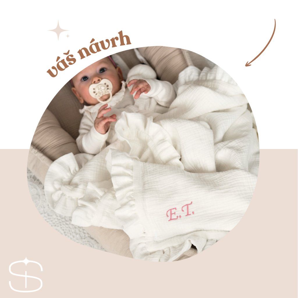 Rádi vám na deku vyšijeme jméno děťátka či jakýkoli jiný nápis dle vašeho přání.