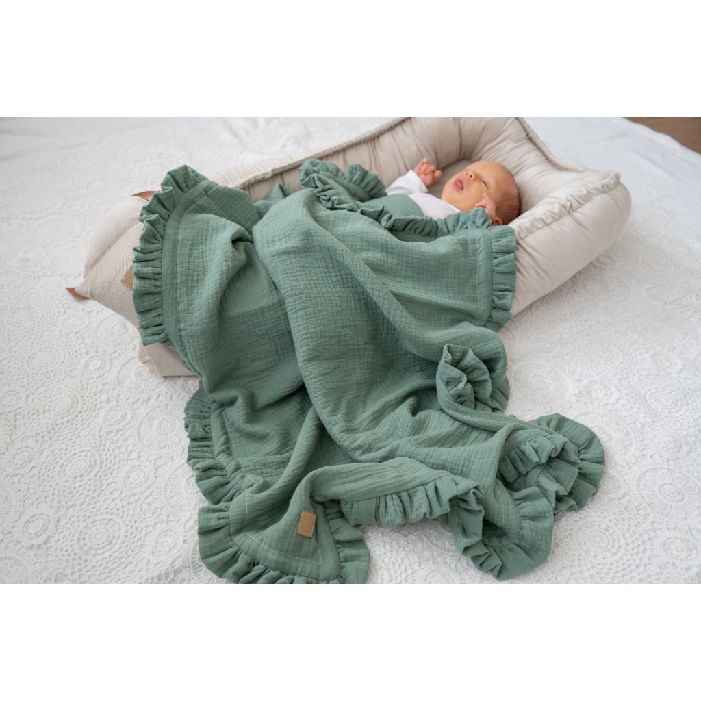 Deka mušelínová s volánem zelená