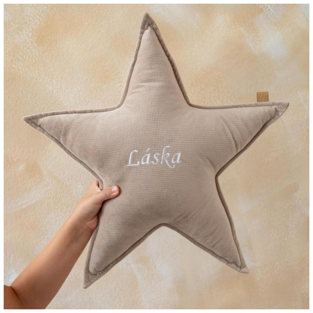 Dekorační polštářek hvězda s vyšitím "láska" béžový velvet