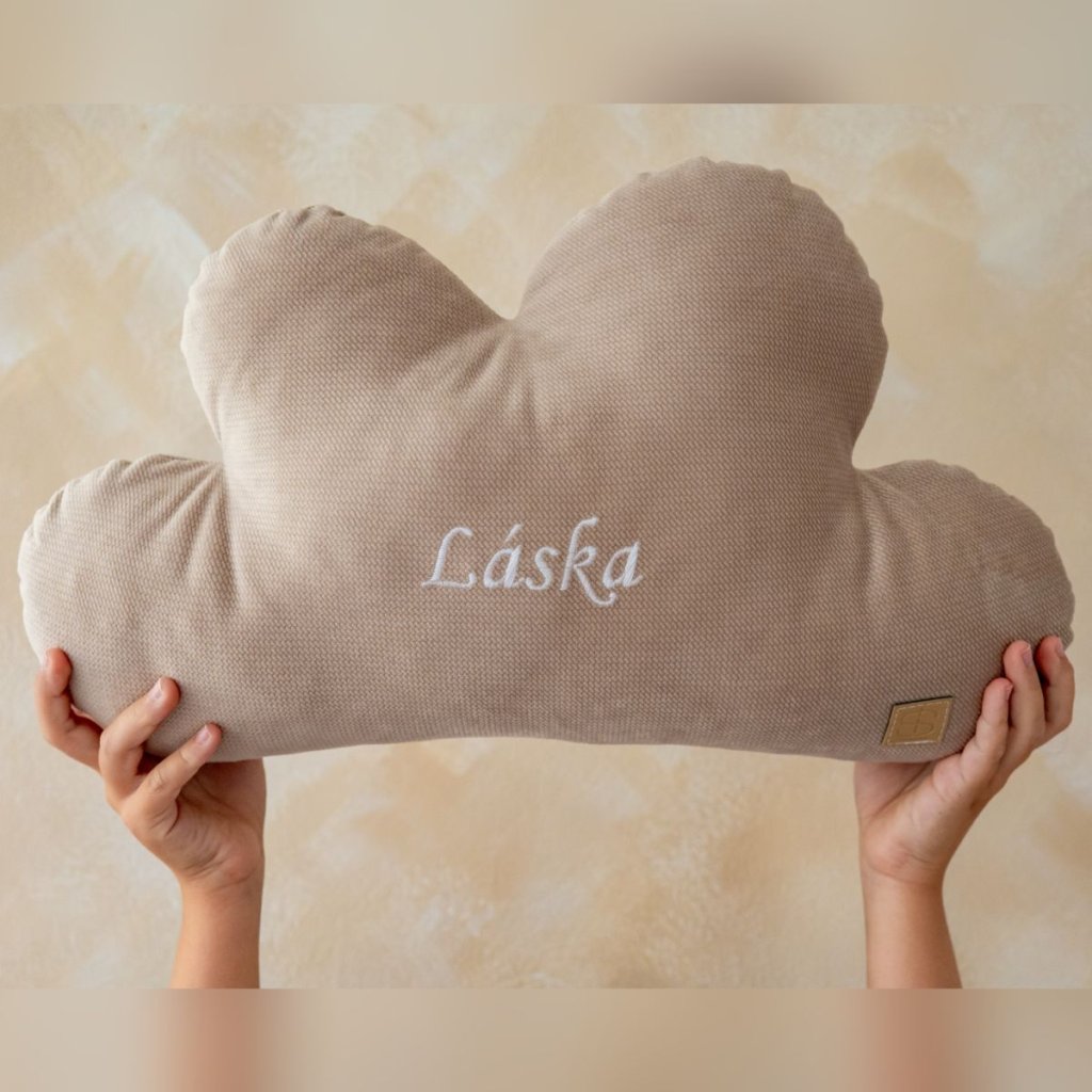 Dekorační polštářek mrak s vyšitím "láska" béžový velvet