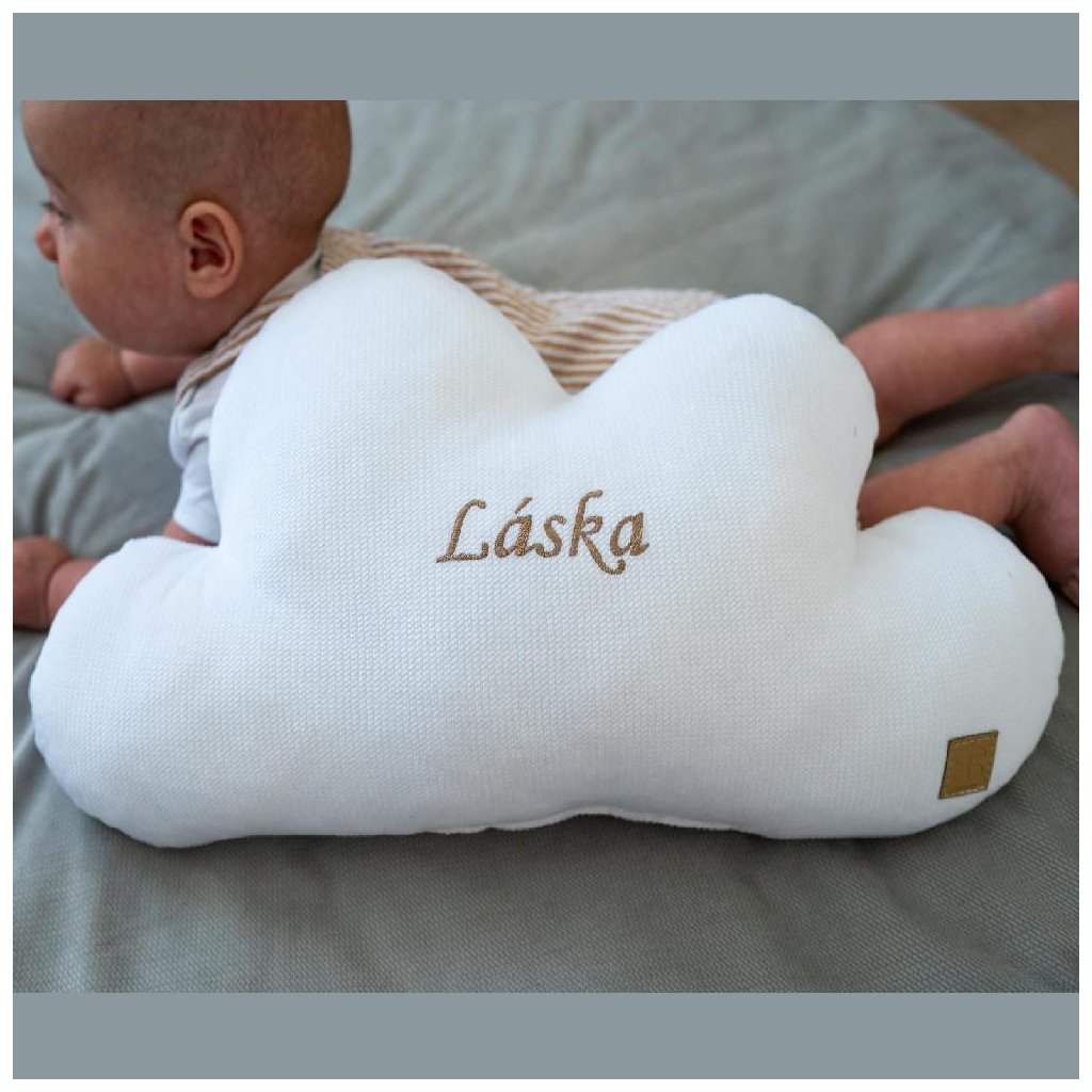 Dekorační polštářek mrak s vyšitím "láska" bílý velvet