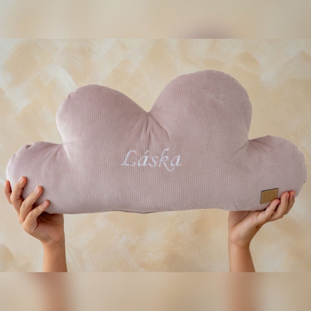 Dekorační polštářek mrak s vyšitím "láska" pudrový velvet