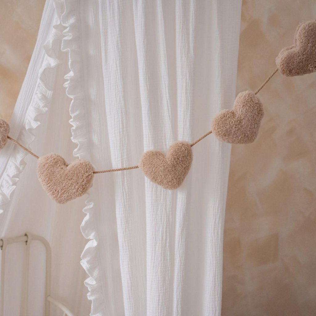Dětská girlanda do pokojíčku béžový beránek - srdíčka, 100cm