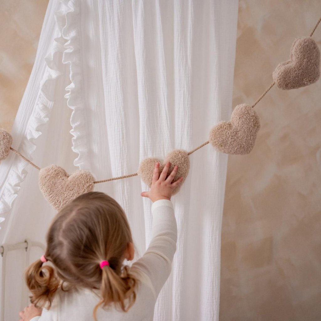 Látková girlanda je přesně tou něžnou závěsnou dekorací, která nejen z dětského pokojíčku vytvoří útulné a inspirativní prostředí, kam se bude vaše holčička či váš chlapeček vždy těšit. Na girlandě jsou našité šňůrky, které umožňují její všestranné využití. Zavěšení na stěnu, do rohu místnosti, nad postýlku, k teepee stanu, na okno či kamkoli, kam ji společně namyslíte.