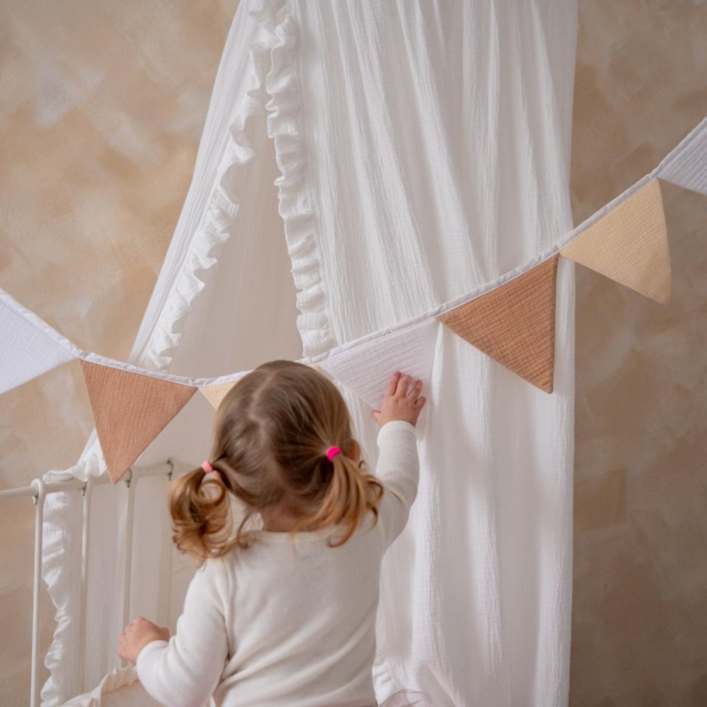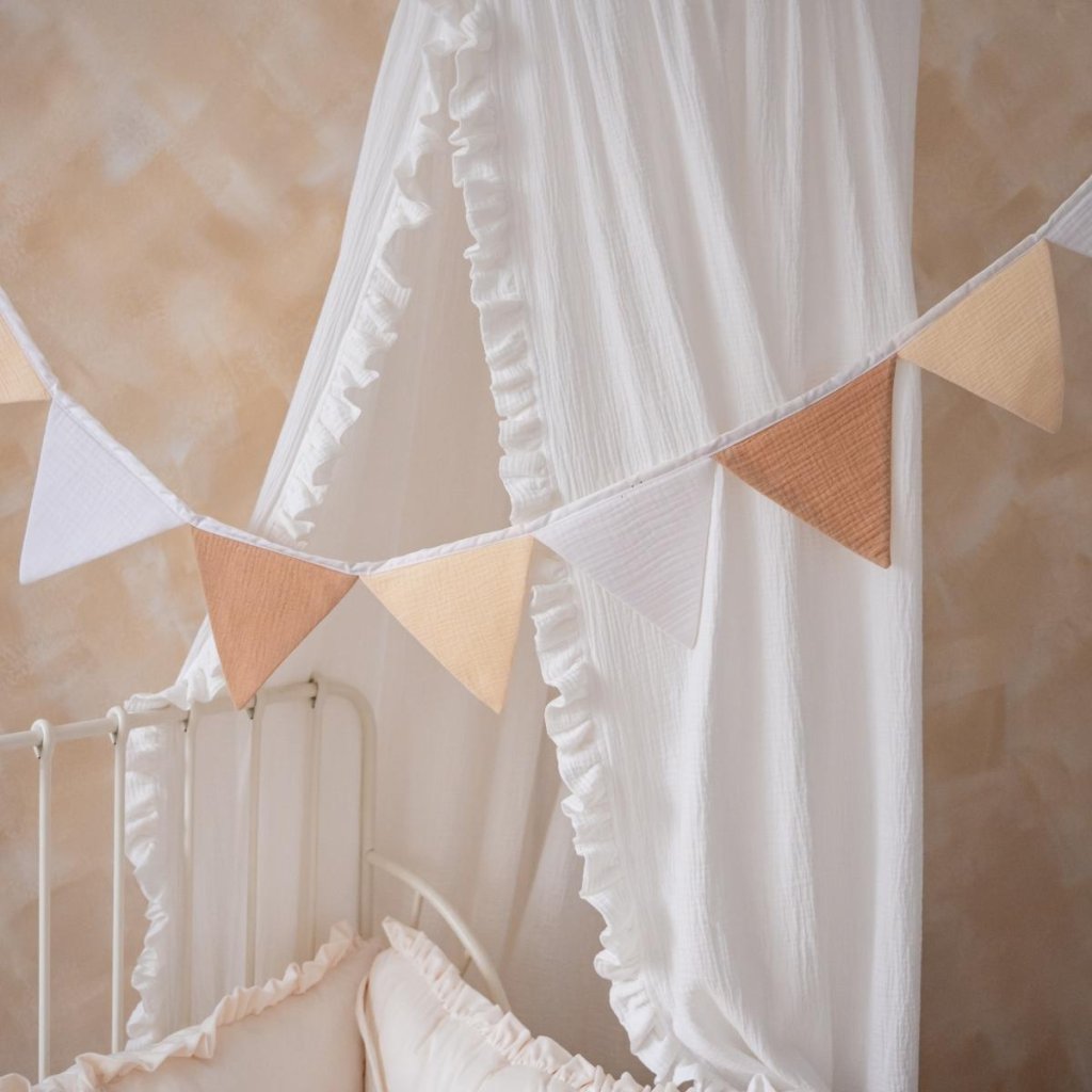 Dětská girlanda do pokojíčku béžový mušelín - vlajky, 100cm