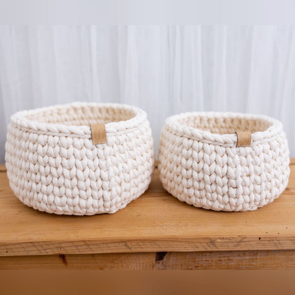 Dvoudílný set háčkovaných košíků smetanový
