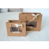 Prostorná papírová taška s uchy z kroucené šňůry, uprostřed ji zdobí plastový průhled.  Do tašky se vejdou nejen drobné zboží (muchláček, šustící kousátko), ale i větší produkty jako dekorační i stabilizační polštářky, naše dárkové sady "jsem láska" a nebo pleny v krabičce.