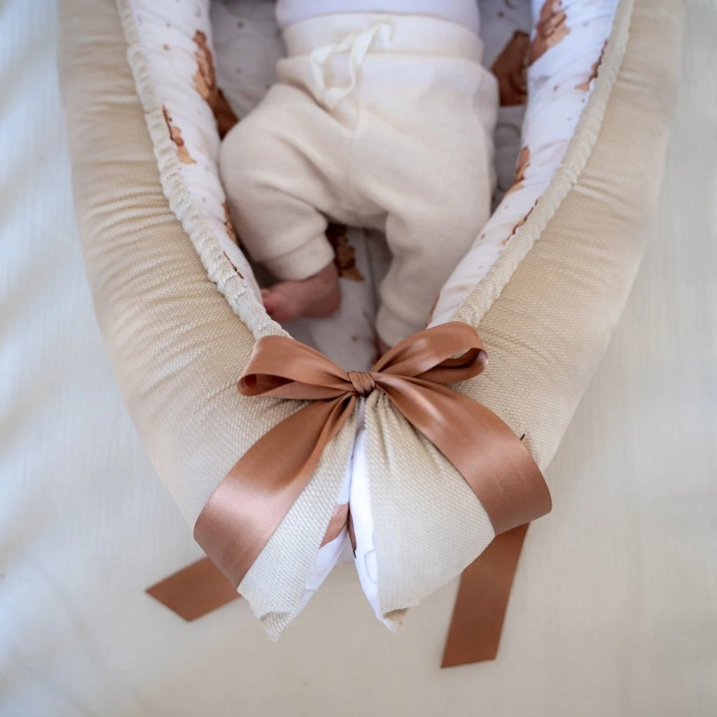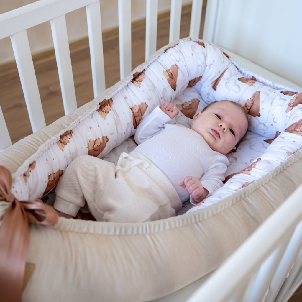 Hnízdečko je nepostradatelnou součástí výbavičky každého miminka. Dopřejte vašemu děťátku vždy a všude bezpečný a útulný prostor a to již od narození do přibližně 12 měsíců. Využijete jej v postýlce, kolíbce či košíku ale také na návštěvách či při nocování kdykoli mimo domov. Příjemné a pro miminko již známé prostředí hnízdečka, jeho tvar, materiál i barvy, mu tak kdykoli zajistí známý pocit bezpečí a pohodlí a vám pohodlnější uspávání a dobrý pocit, že je miminko stále „ve svém“.