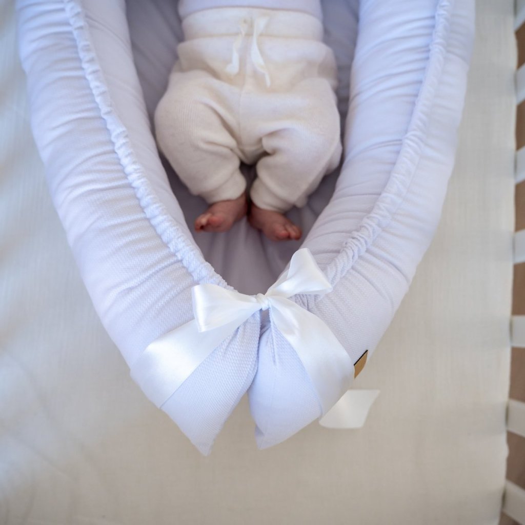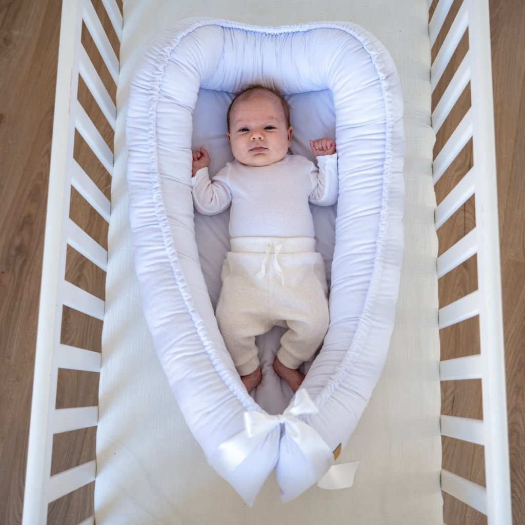 Hnízdečko je nepostradatelnou součástí výbavičky každého miminka. Dopřejte vašemu děťátku vždy a všude bezpečný a útulný prostor a to již od narození do přibližně 12 měsíců. Využijete jej v postýlce, kolíbce či košíku ale také na návštěvách či při nocování kdykoli mimo domov. Příjemné a pro miminko již známé prostředí hnízdečka, jeho tvar, materiál i barvy, mu tak kdykoli zajistí známý pocit bezpečí a pohodlí a vám pohodlnější uspávání a dobrý pocit, že je miminko stále „ve svém“.