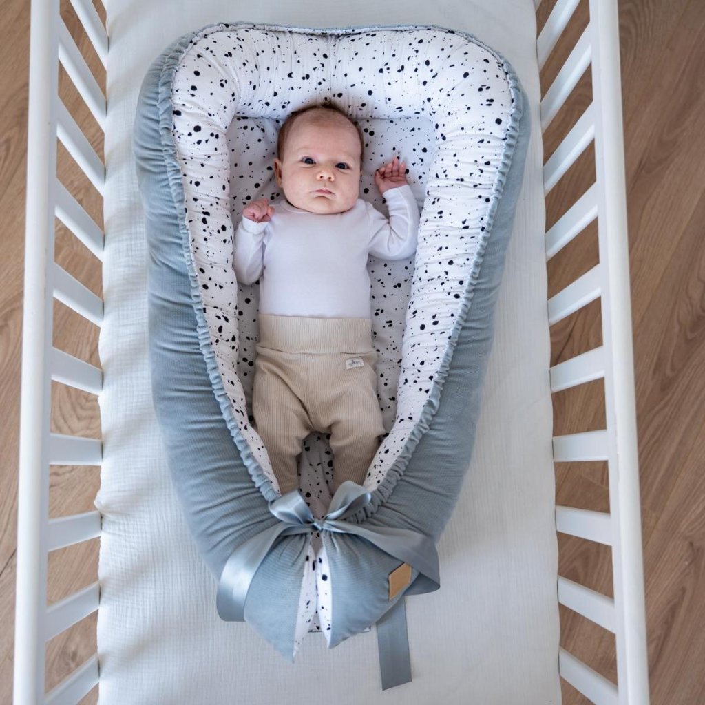 Hnízdečko je nepostradatelnou součástí výbavičky každého miminka. Dopřejte vašemu děťátku vždy a všude bezpečný a útulný prostor a to již od narození do přibližně 12 měsíců. Využijete jej v postýlce, kolíbce či košíku ale také na návštěvách či při nocování kdykoli mimo domov. Příjemné a pro miminko již známé prostředí hnízdečka, jeho tvar, materiál i barvy, mu tak kdykoli zajistí známý pocit bezpečí a pohodlí a vám pohodlnější uspávání a dobrý pocit, že je miminko stále „ve svém“.