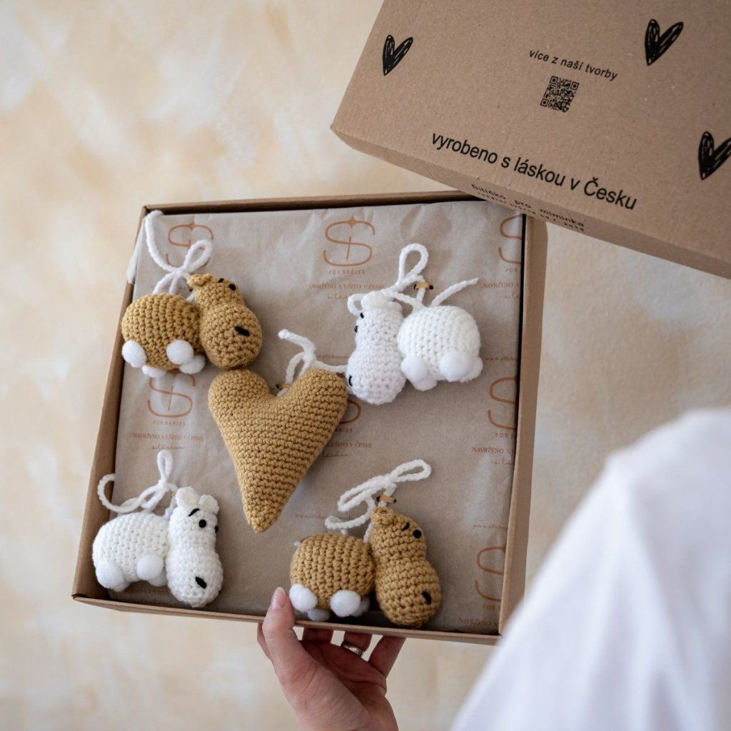 Hrací kolotoč nad postýlku s hnědými hrošíky