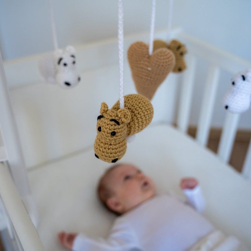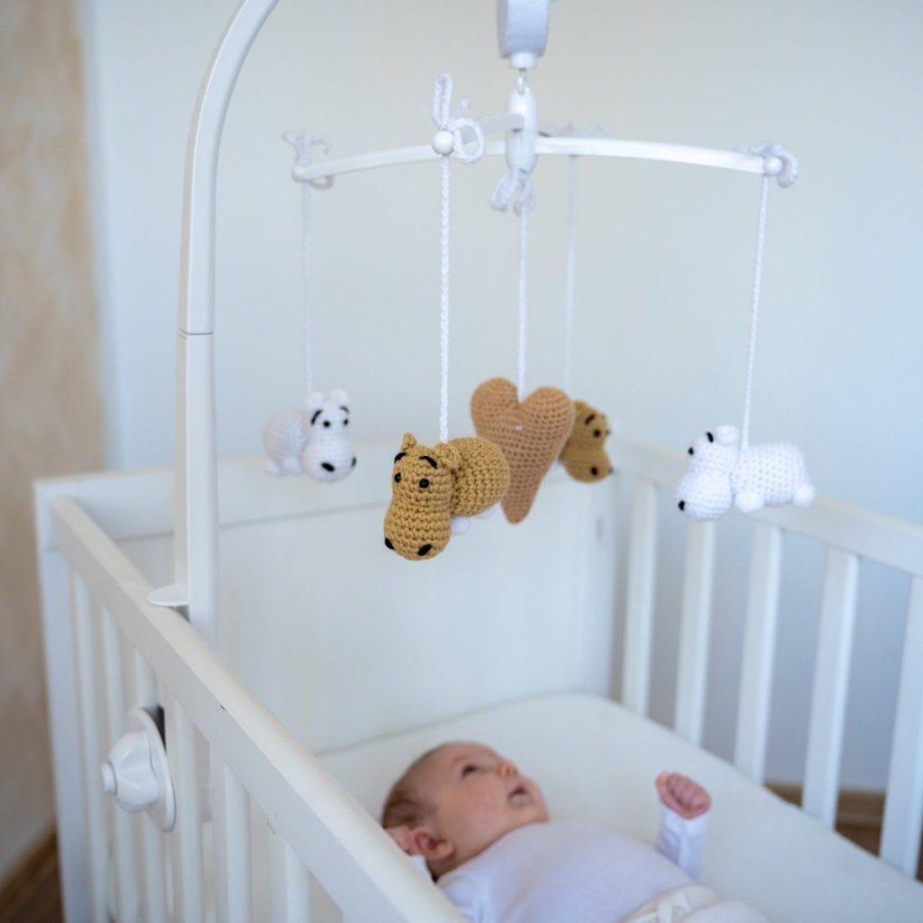 Jednoduše - stimulovat, unavit očička a pomoci s usnutím. To jsou hlavní úkoly hracího kolotoče nad postýlku, na kterém jsou zavěšení čtyři malí hnědí hrošíci. Děťátku bude kolotoč hrát příjemnou Schubertovu ukolébavku a dětská postýlka se rázem promění v oázu dokonalého odpočinku.