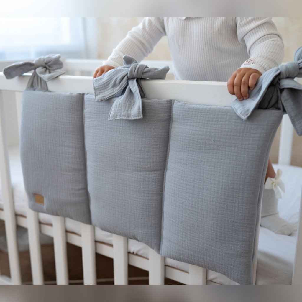 Kapsář oceníte pro maličkosti jako je dudlík a nebo krém, plenu a nebo lahvičku, později i na pyžámko a usínáčka. Navíc dokonale zútulní celou postýlku a ta bude působit uceleně. Na kapsáři jsou našity tři bavlněné šňůrky, díky kterým uvážete kapsář na každý typ malé i velké postýlky.
