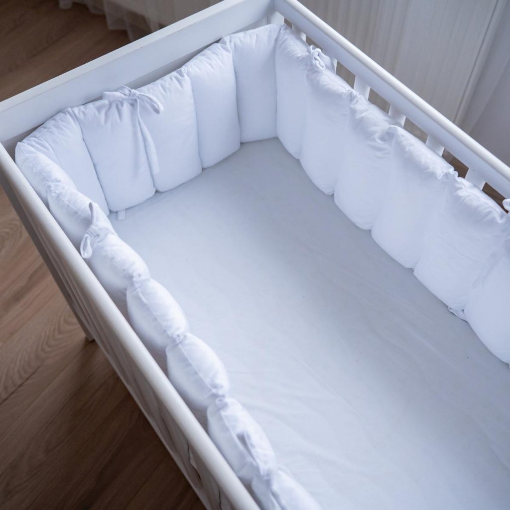 Polštářkový mantinel s prošitím harmonika v kuse vytvoří v postýlce měkké hranice a zajistí tepelný komfort během jakékoli roční doby.