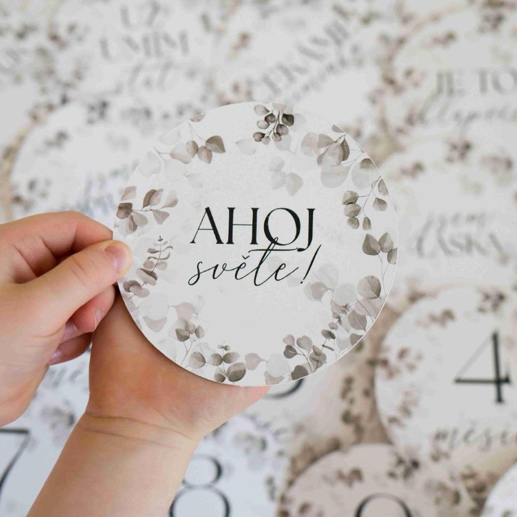 Autorské vzory z našich látek jsme převedli na papír a vznikly z toho bezkonkurenční milníkové kulaté kartičky, které využijete jak před porodem, tak hlavně po porodu. Text jsme vymysleli tak, aby byly maximálně vystiženy životní situace a vzpomínky, které si fotkou chcete uchovat a vzpomínat.