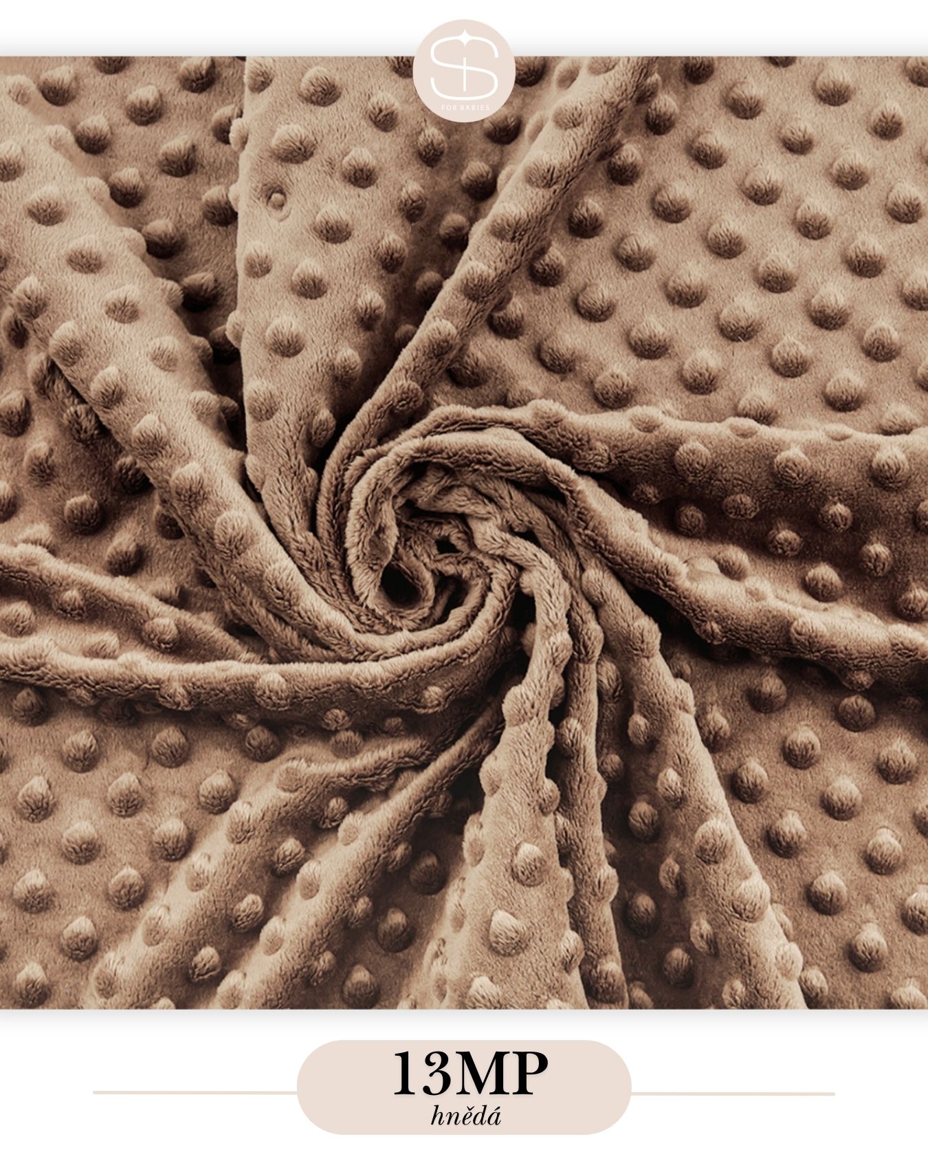 Minky s puntíky je velice moderní materiál, vyrobený ze 100% polyesterových vláken. Je hedvábně jemný, měkký a krásně teplý. Puntíky dodávají tomuto materiálu roztomilý vzhled a krásnou strukturu. Je ideální do chladnějšího období.