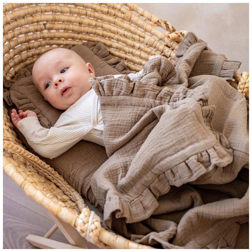 Mušelínový set do kočárku polštářek & deka & prostěradlo hnědá