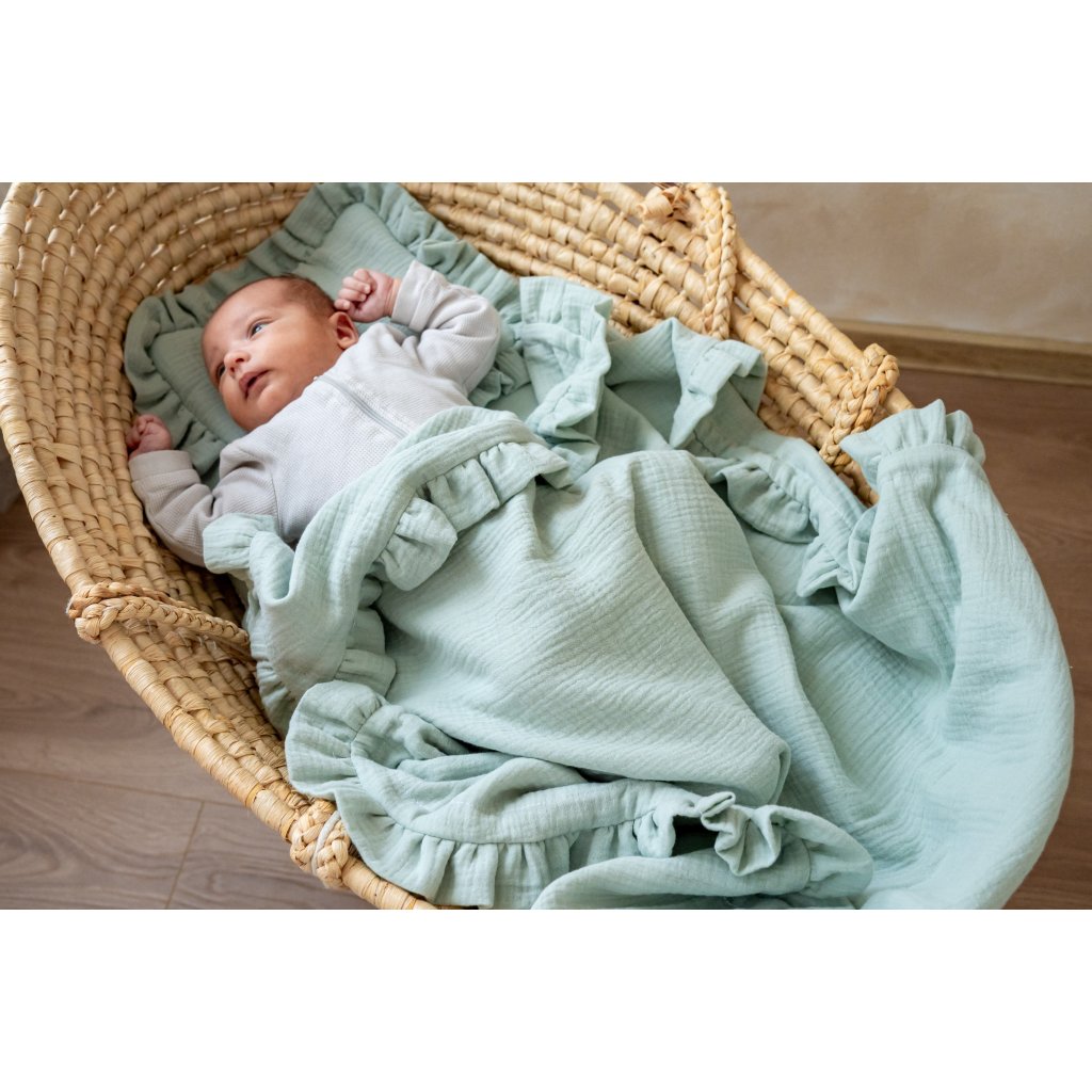 Mušelínový set do kočárku polštářek & deka & prostěradlo mint zelená