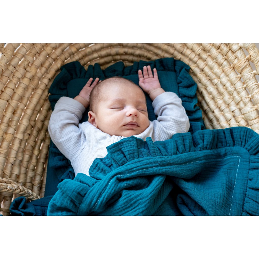 Mušelínový set do kočárku polštářek & deka & prostěradlo petrolejový