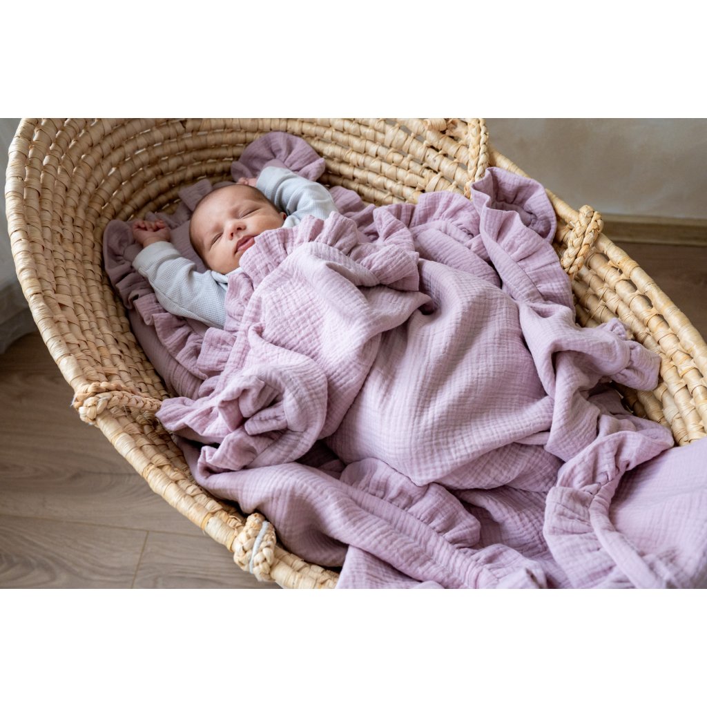 Mušelínový set do kočárku polštářek & deka & prostěradlo pudrové