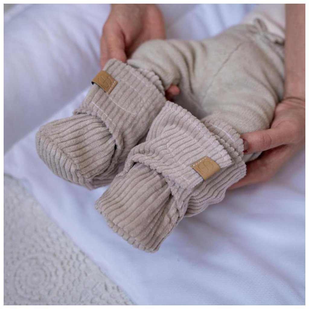 Novorozenecké ručně šité capáčky béžový manšestr