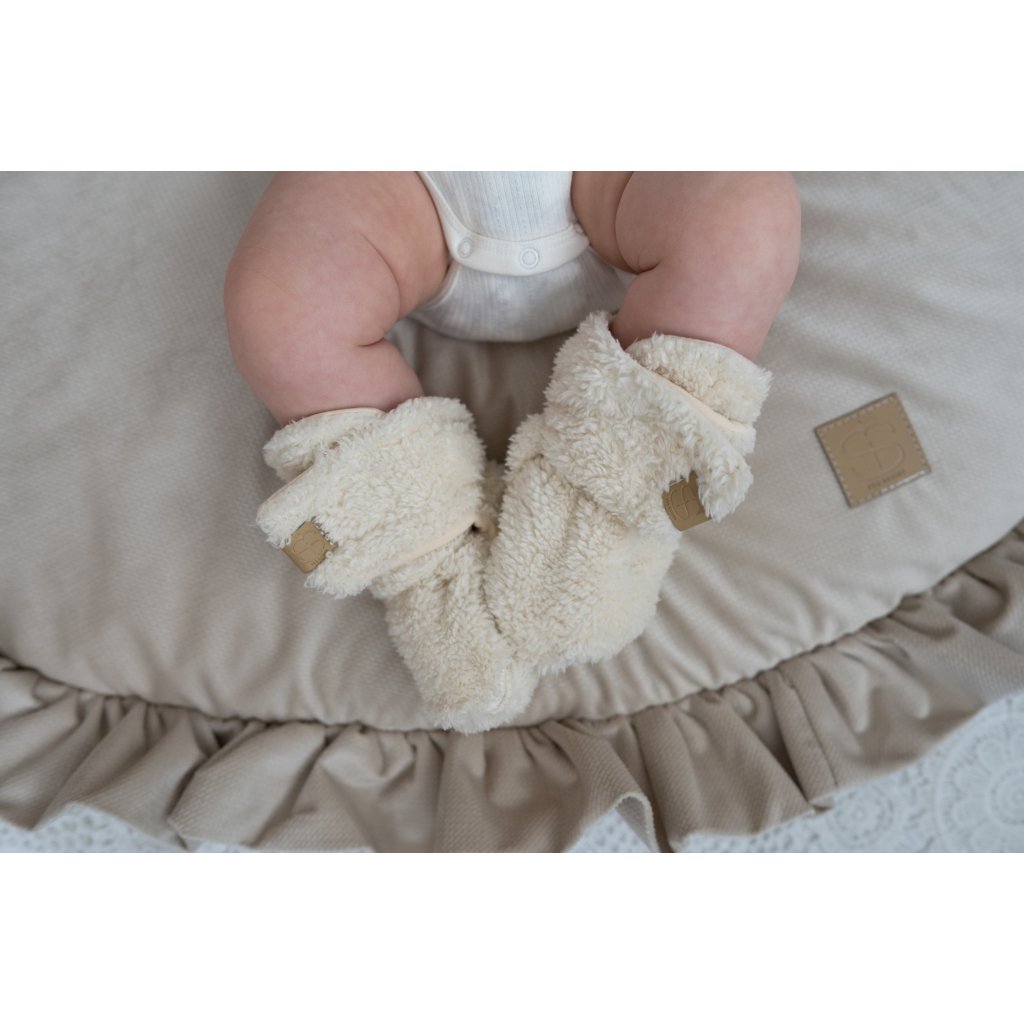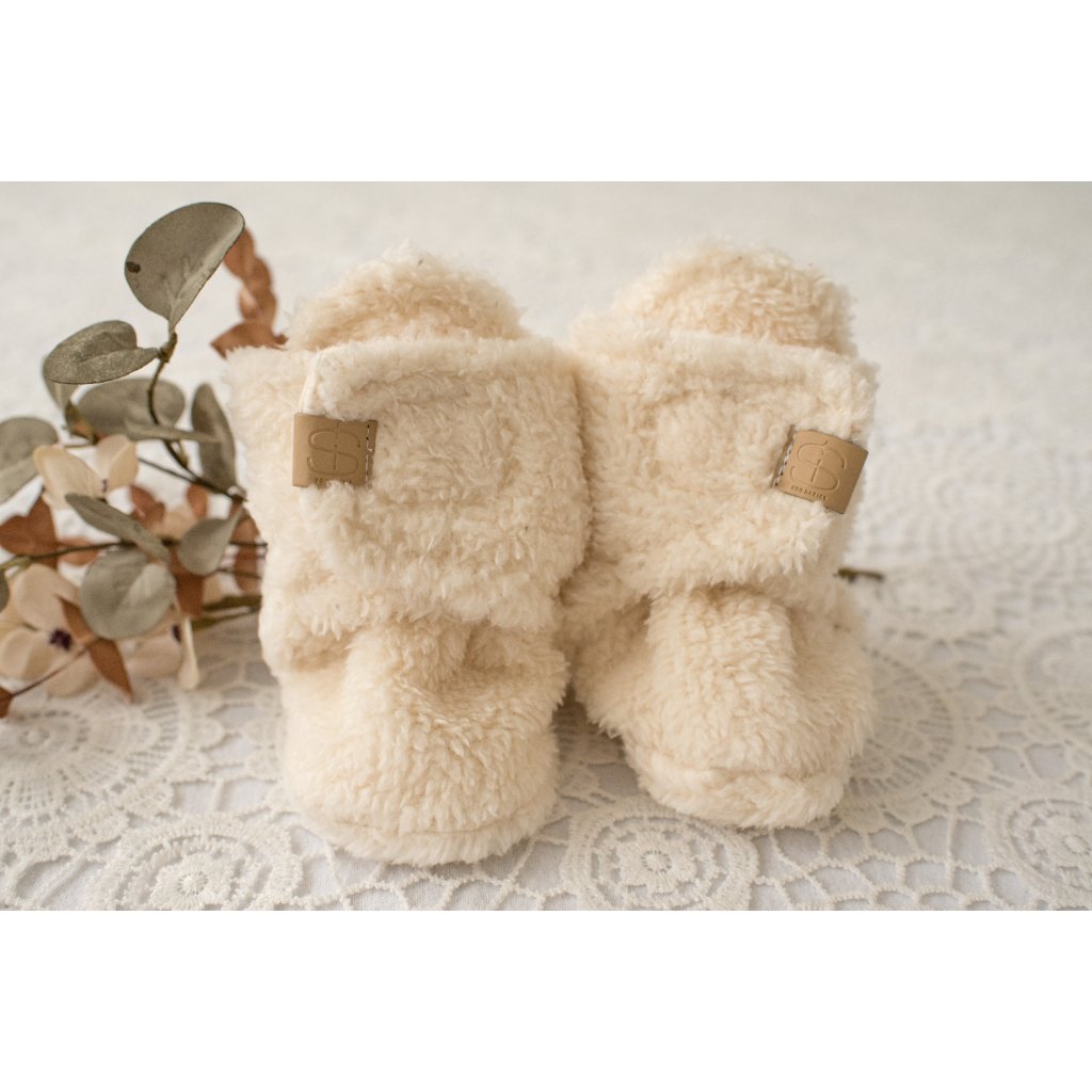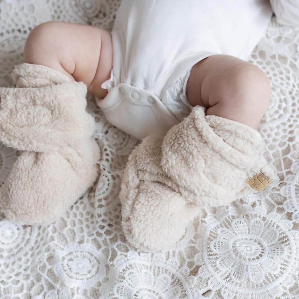 Propracovaný střih capáčků s tenkou gumičkou a suchým zipem, které vašemu miminku zajistí velké pohodlí a zároveň pevně drží na nožičce a nepadají.