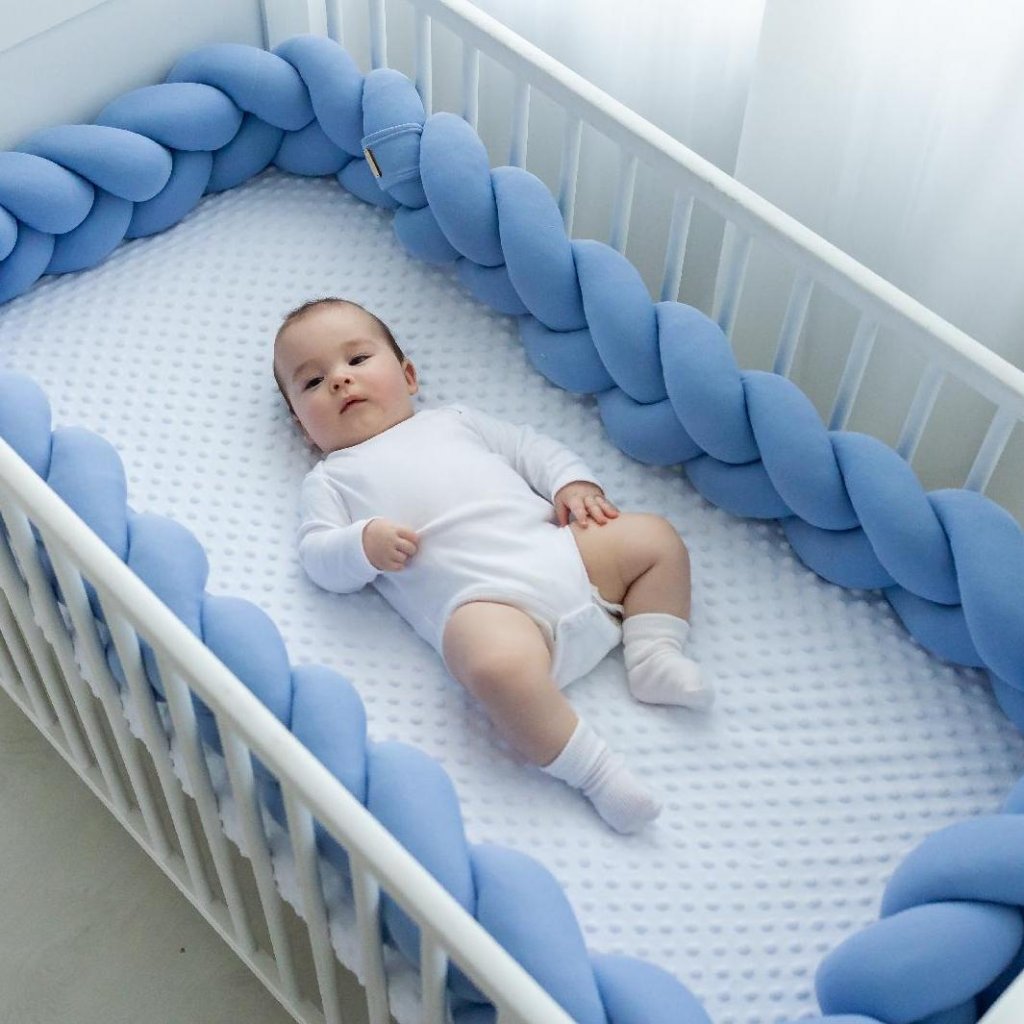 Bílý pletený mantinel vytvoří v postýlce, kolíbce či košíku měkké hranice a zajistí tepelný komfort během jakékoli roční doby. Copový mantinel vytvoří útulný pelíšek, který chrání hlavičku i tělíčko před možným úrazem o její tvrdé bočnice během spánku. Vaše miminko tak může v postýlce po náročném dni v klidu odpočívat ale i „cestovat“.