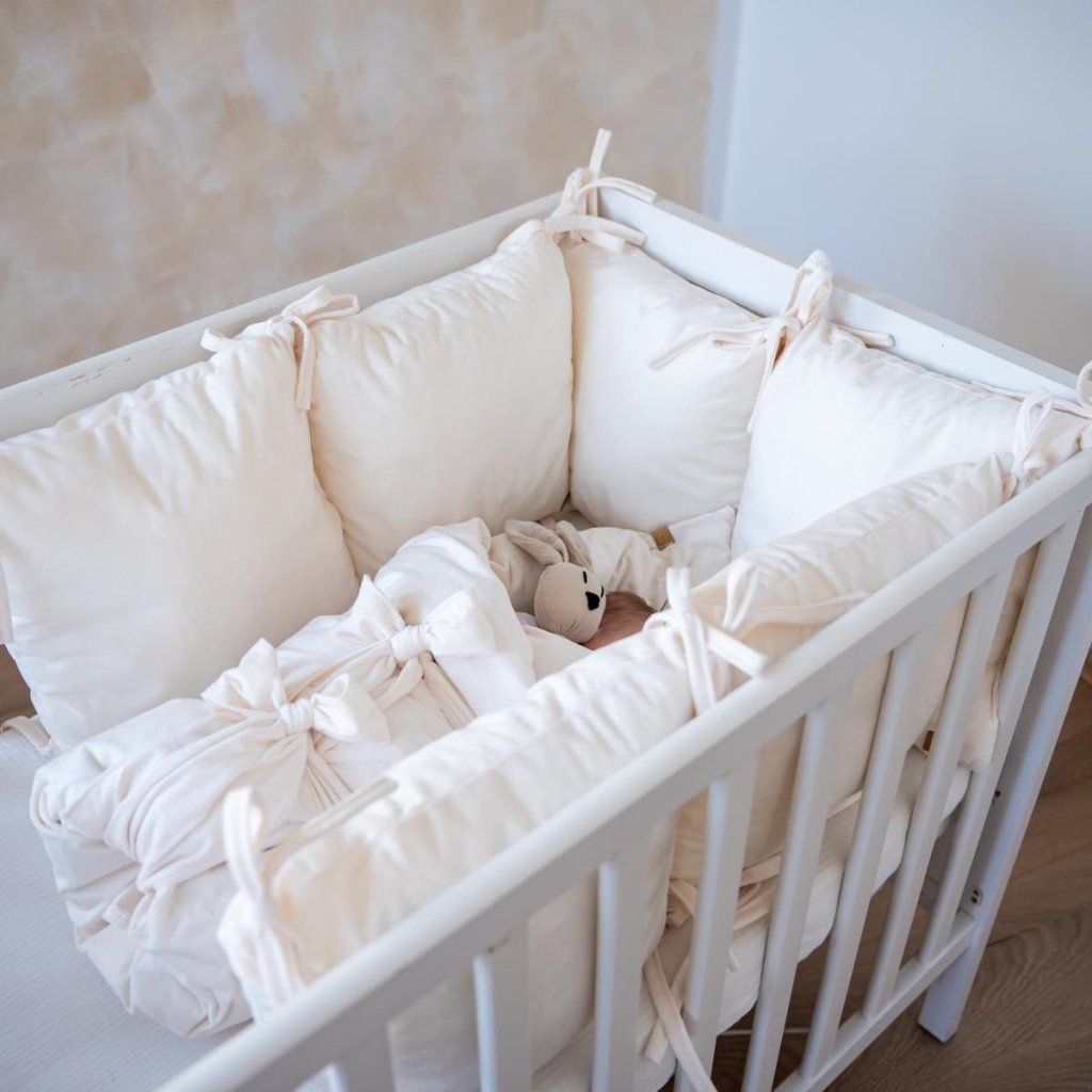 Polštářkový mantinel do postýlky smetanový velvet, celkem 6 kusů