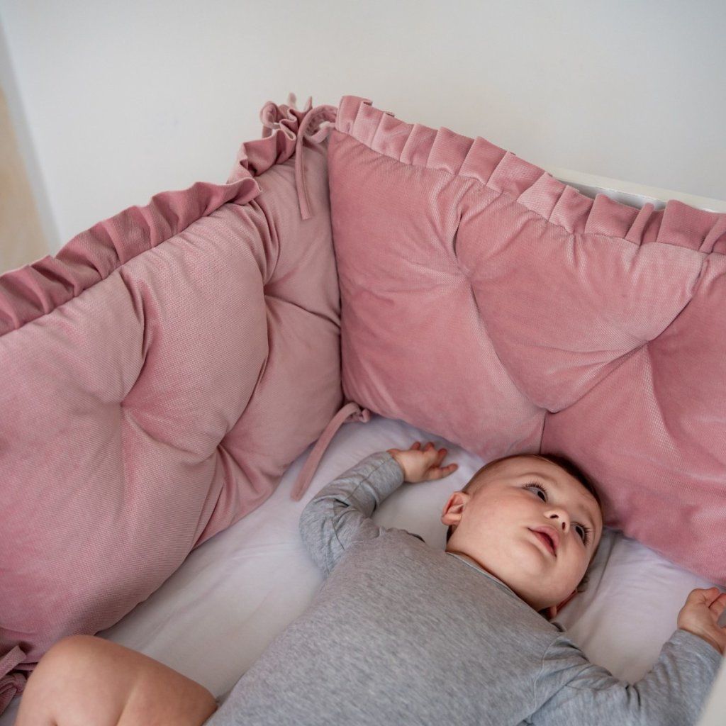 Prošívaný mantinel do postýlky s volánem tmavě pudrový velvet 3kusy 35x60cm