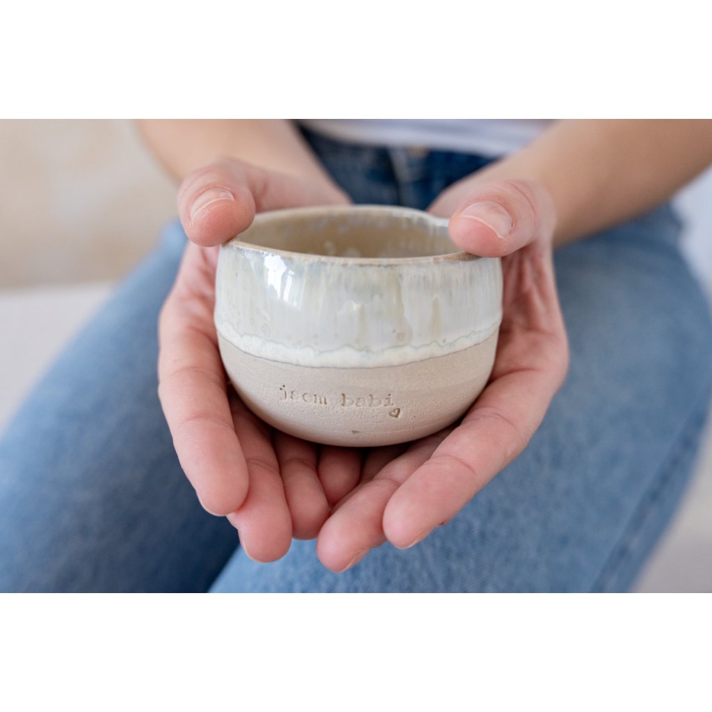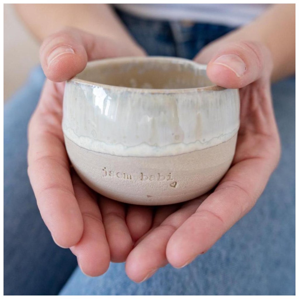 Naše kolekce "jsem láska" se rozšířila o velmi oblíbené označení "jsem babi", který nám na míru ručně vyrobila paní Helli Ceramics z Brna. Každý hrníček je ručně tvarován do srdce, upečen a glazurou natřen.