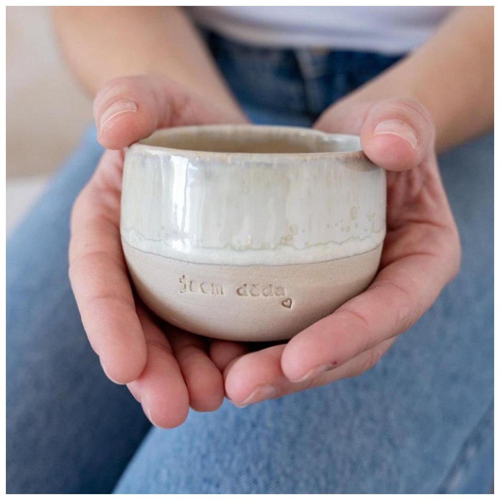 Naše kolekce "jsem láska" se rozšířila o velmi oblíbené označení "jsem děda", který nám na míru ručně vyrobila paní Helli Ceramics z Brna. Každý hrníček je ručně tvarován do srdce, upečen a glazurou natřen.