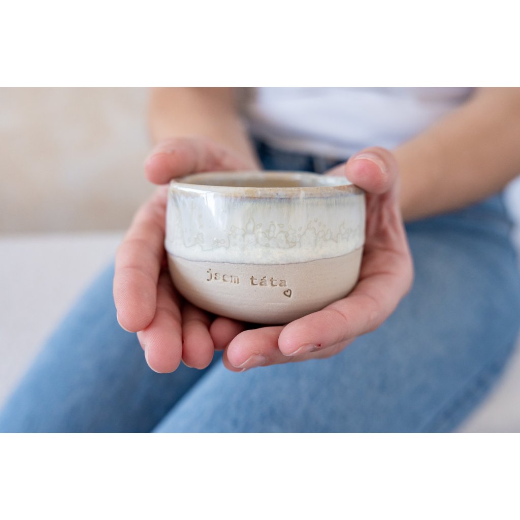 Naše kolekce "jsem láska" se rozšířila o velmi oblíbené označení "jsem táta", který nám na míru ručně vyrobila paní Helli Ceramics z Brna. Každý hrníček je ručně tvarován do srdce, upečen a glazurou natřen.