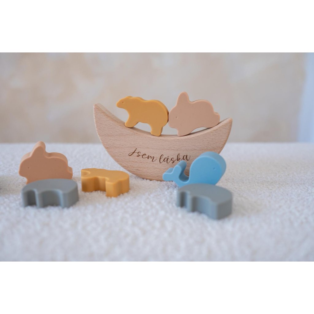 "Jsem láska" Balančný drevený mesiac so zvieratkami