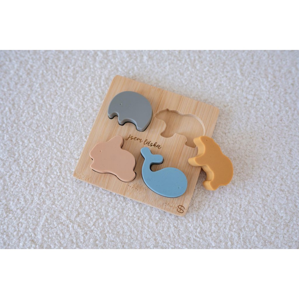 "Jsem láska" Drevená vkladačka so zvieratkami