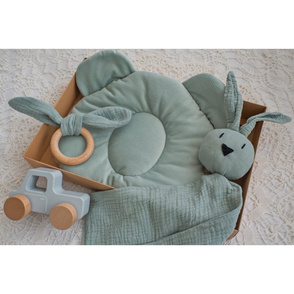 Darčekový balíček „Jsem láska“ mint set – hryzadlo, vankúšik a spinkáčik