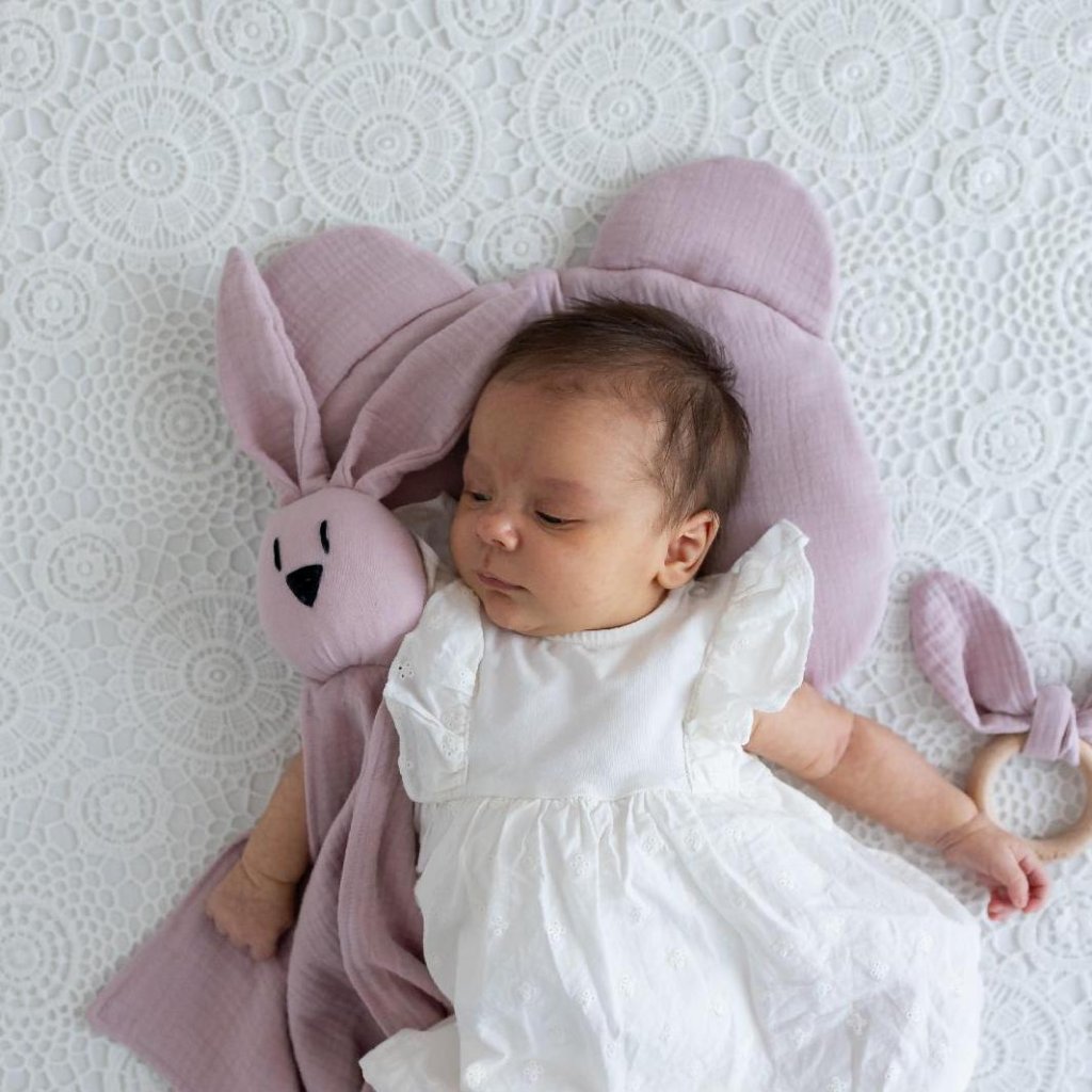 „Jsem láska“ je kolekcia, ktorú pre vás šijeme naozaj s láskou. Tento set je ideálnym darčekom pre novonarodené dieťatko a svojou praktickosťou poteší každú mamičku. Drevené hryzadlo je do hladka vybrúsené, bezpečné a poslúži ako záchrana při prvých zúbkoch a bolesti ďasien. Poduška funguje ako stabilizačný ergonomicky tvarovaný vankúšik, který pomáhá udržať hlavičku bábätka v správnej polohe a zabráni tak jej splošteniu. A trojicu dopĺňa spinkáčik, maznavá hračka a nepostrádateľný kamarát v tvare zajačika, ktorý bábätku dopraje pocit pohody a bezpečia.