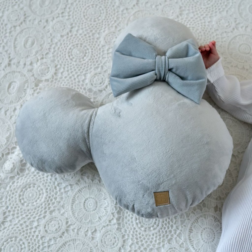 Dekoračný vankúšik Mickey sivá hladká minky a sivá mašľa