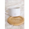 Designový hrnček "Jsi láska" béžový v tvare makronky s gravírovaním na podtácke