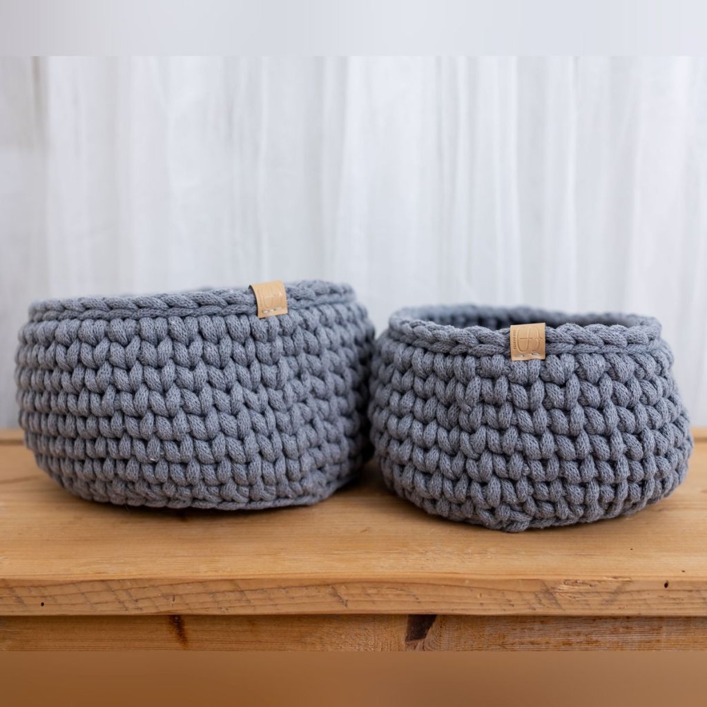 Dvojdielny set háčkovaných košíkov tmavosivý