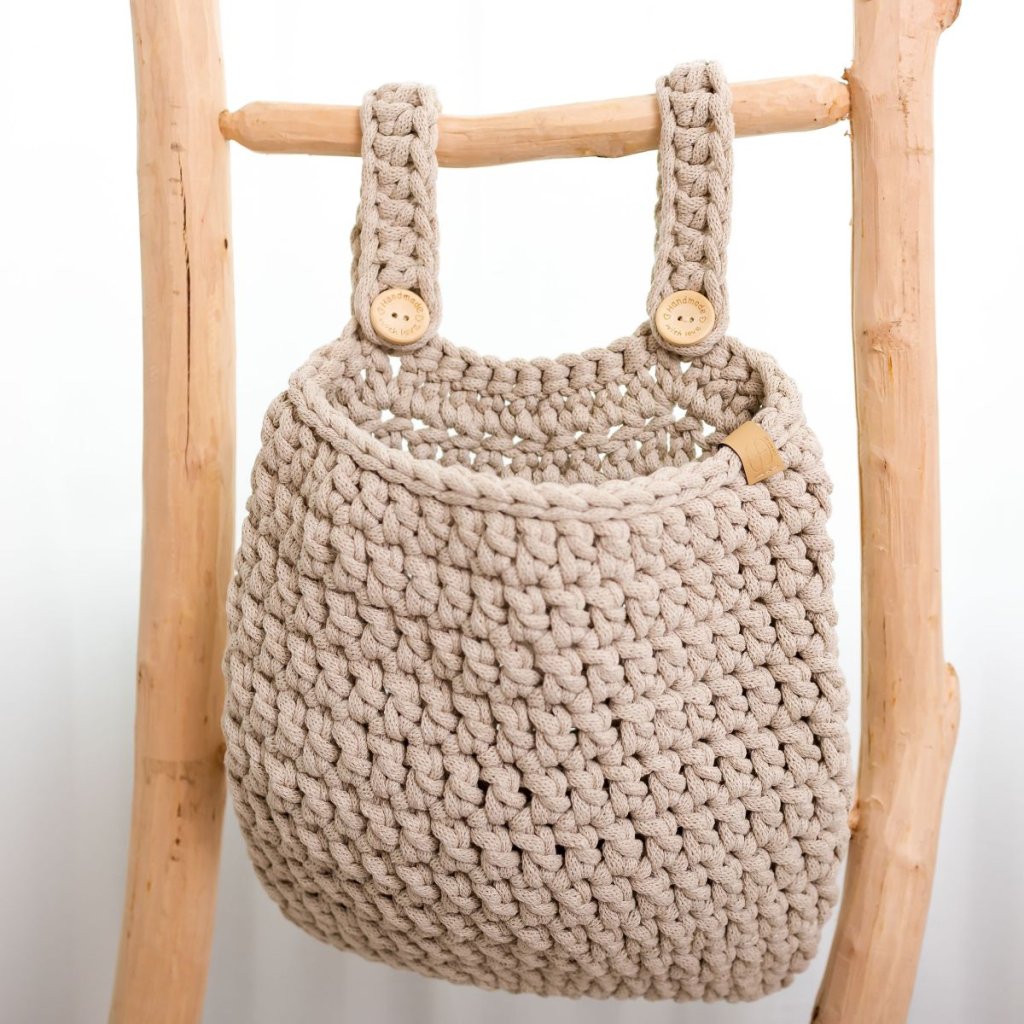 Doprajte si krásny organizér, ktorý je praktický nielen na postieľku, ale kamkoľvek, kde potrebujete mať úložný priestor. Vďaka pevnej priadzi organizér krásne drží svoj tvar, je vhodný na plienky, utierky a ďalšie nepostrádateľné veci pre bábätko.