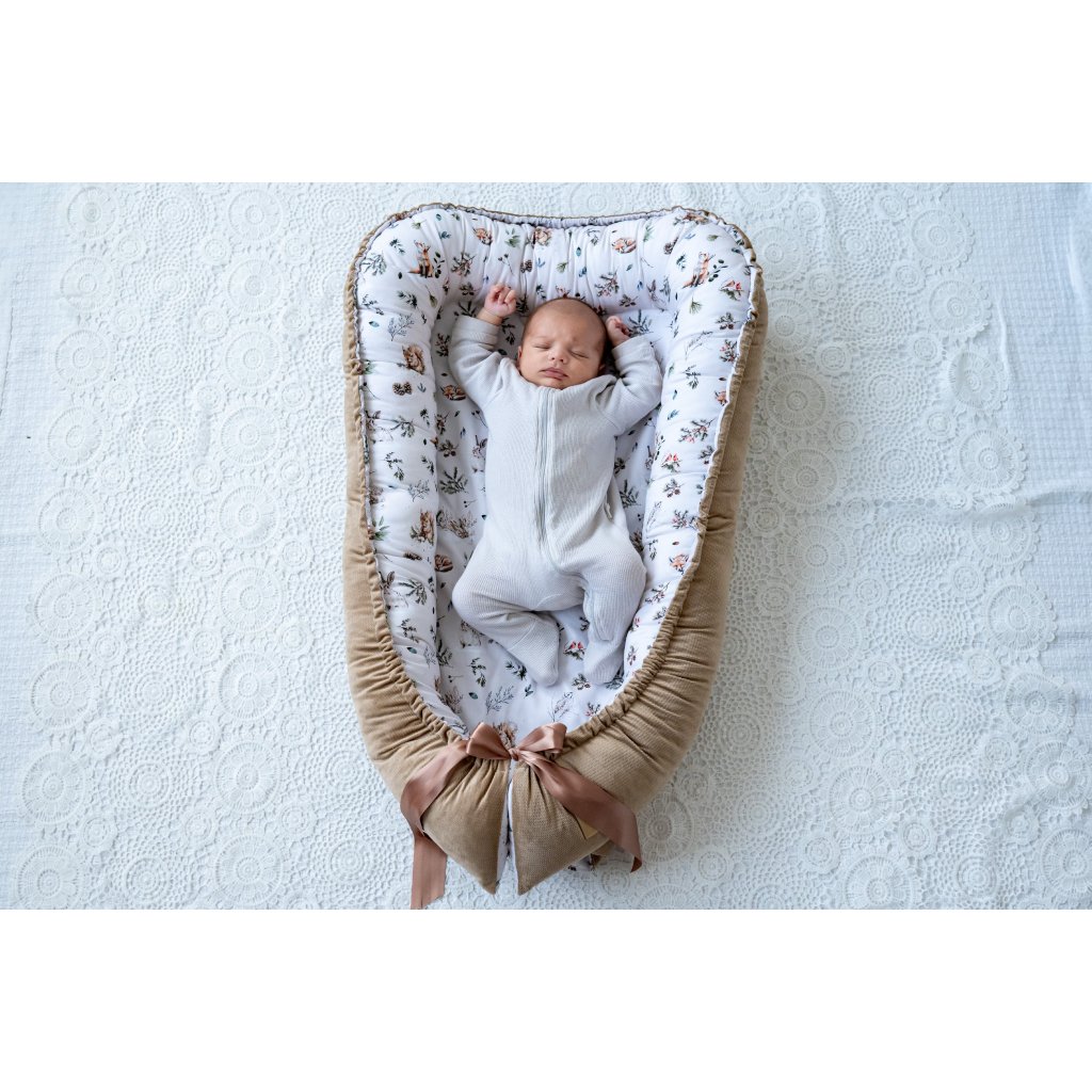Hniezdočko je nepostrádateľnou súčasťou výbavičky každého bábätka. Doprajte vášmu dieťatku vždy a všade bezpečný a útulný priestor a to už od narodenia do a až do 12 mesiacov. Využijete ho v postieľke, kolíske či košíku, ale aj na návštevách či pri prespávaní kedykoľvek mimo domov. Príjemné a pre bábätko už známe prostredie hniezdočka, jeho tvar, materiál aj farby, mu tak kedykoľvek zaistia známý pocit bezpečia a pohodlia a vám pohodlnejšie uspávaie a dobrý pocit, že je bábätko stále „vo svojom“.