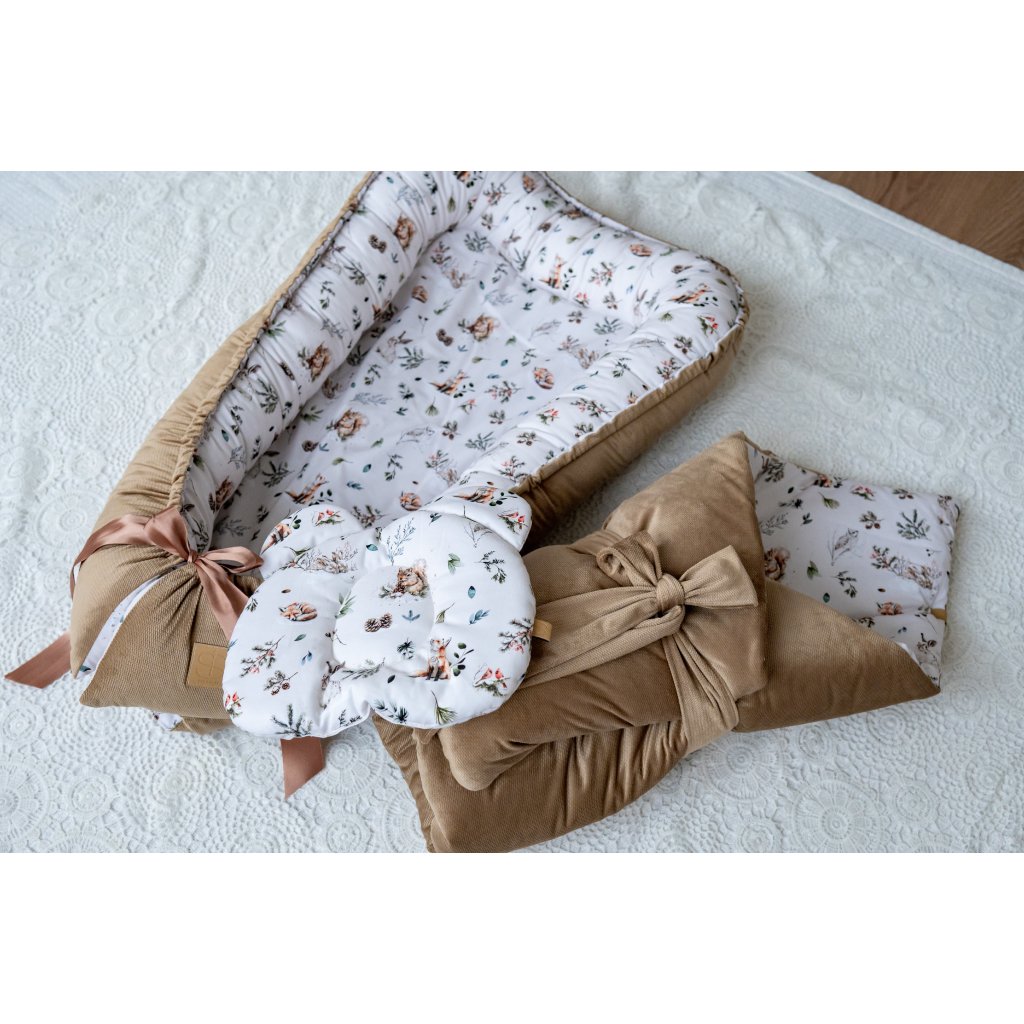Kompletná výbavička do postieľky kapučíno Lesné zvieratká + poduška zadarmo