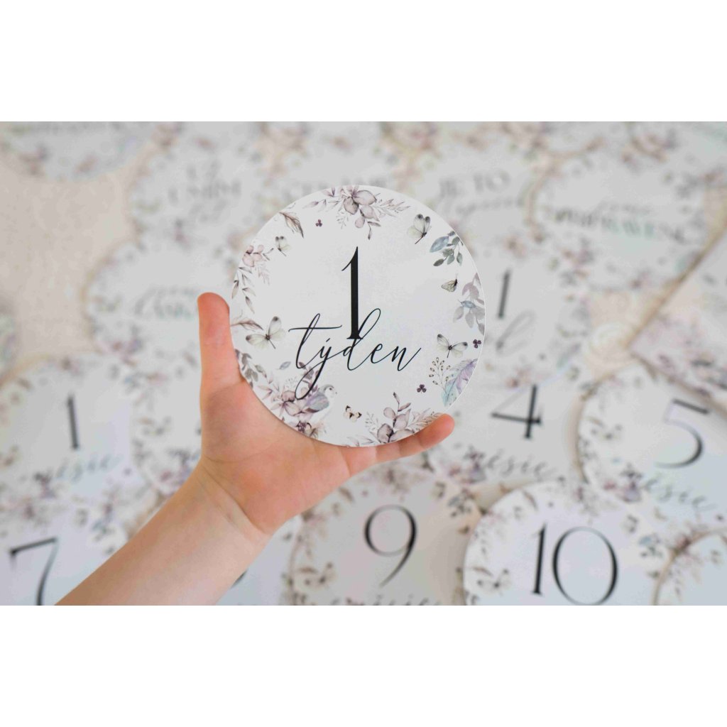 Autorské vzory z našich látok sme preniesli na papier a vznikli z toho bezkonkurenčné okrúhle míľnikové kartičky, ktoré využijete pred pôrodom, ale hlavne po pôrode. Text sme vymysleli tak, aby maximálne vystihoval životné situácie a spomienky, ktoré si na fotkách chcete uchovať a spomínať.