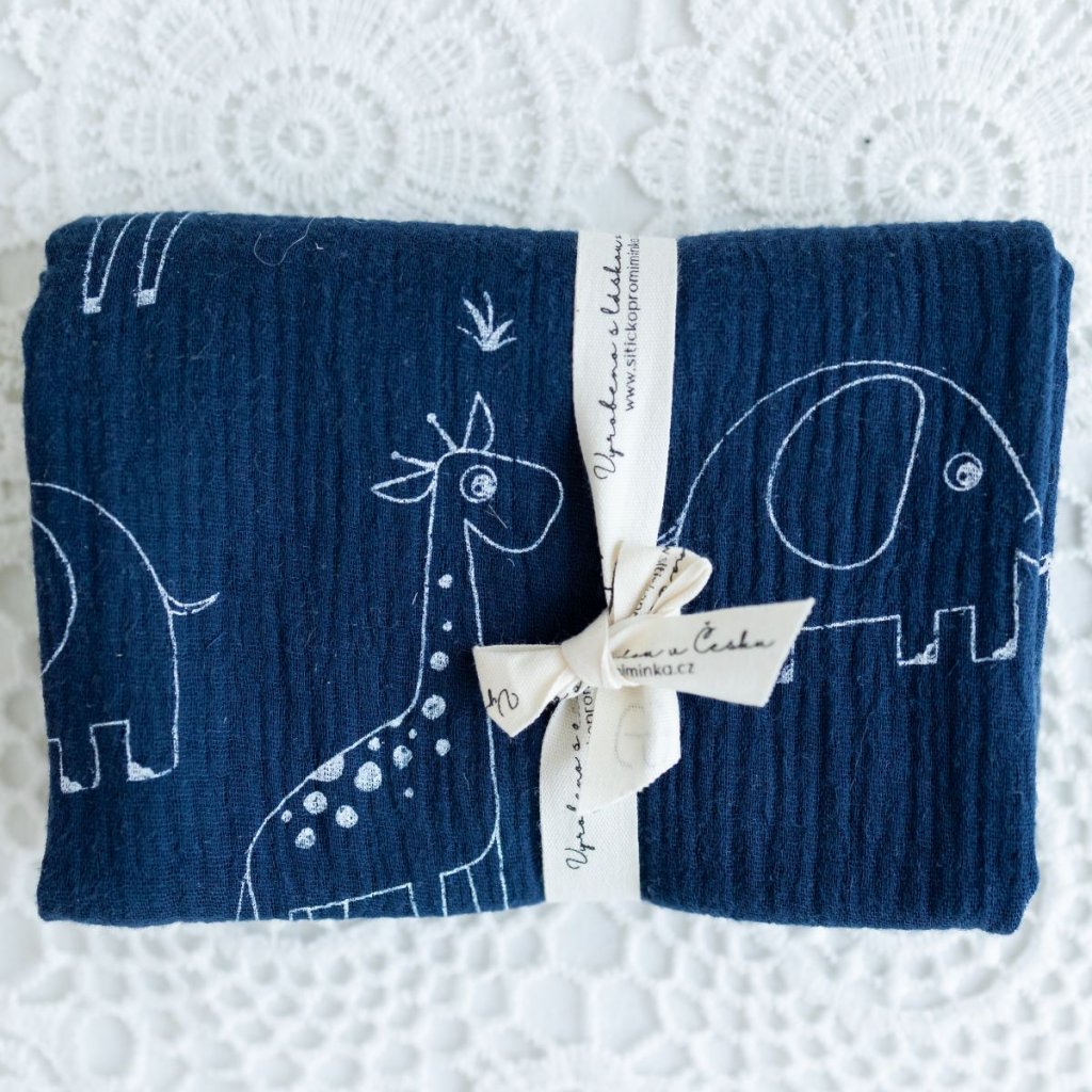 Mušelínová plienka zvieratká tmavá modrá