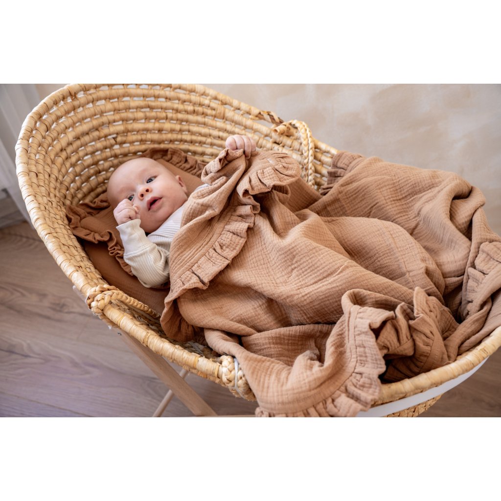 Doprajte vášmu dieťatku vždy a všade pocit bezpečia a tepelný komfort, či už spinká v postieľke, kolíske, košíku, vezie sa v kočíku či cestuje za dobrodružstvom. Hnedá mušelínová deka je multifunkčná, vzdušná a vyrobená z vysoko kvalitnej bavlny. Vankúšik obsahuje ľahkú výplň a svojou veľkosťou padne do kočíka alebo mojžišovho koša ako uliaty. Plachta z mušelínu je vďaka svojej vysokej savosti to najlepšie, čo môžete na matraci v kočíku v teplých dňoch mať.