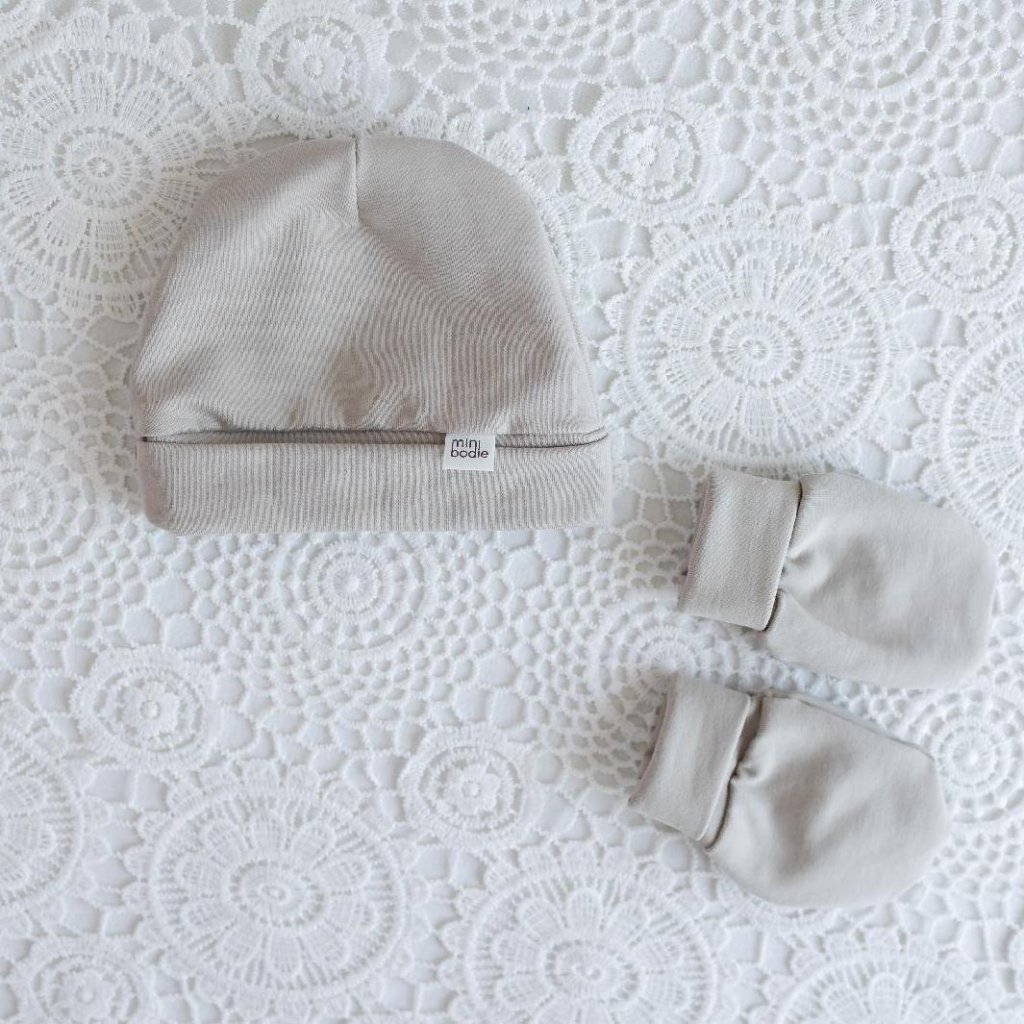 Novorodenecký set čiapočka & rukavičky béžový 0-3mes